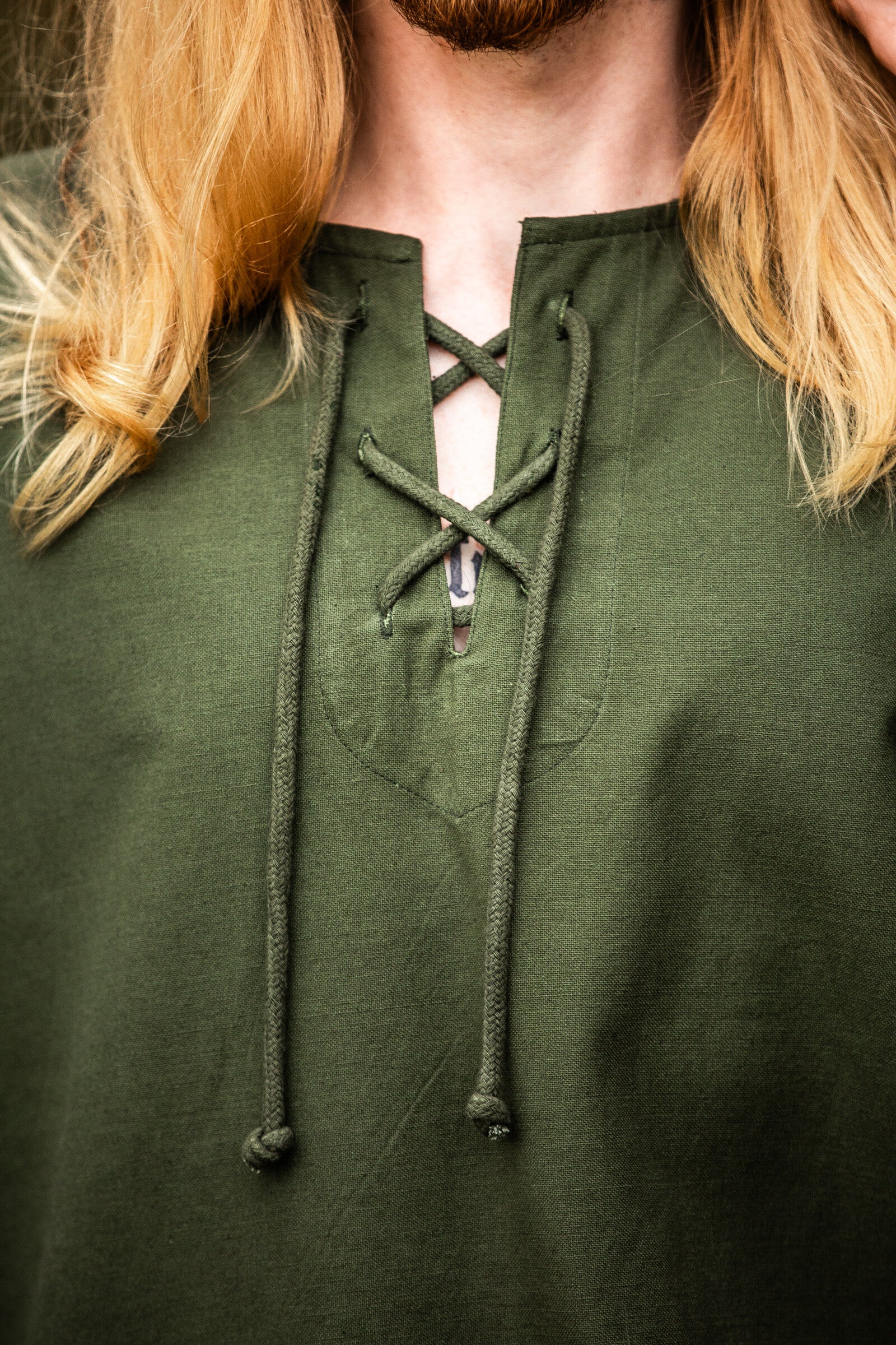 Mittelalter Hemd runder Schnürhalsausschnitt, Grün