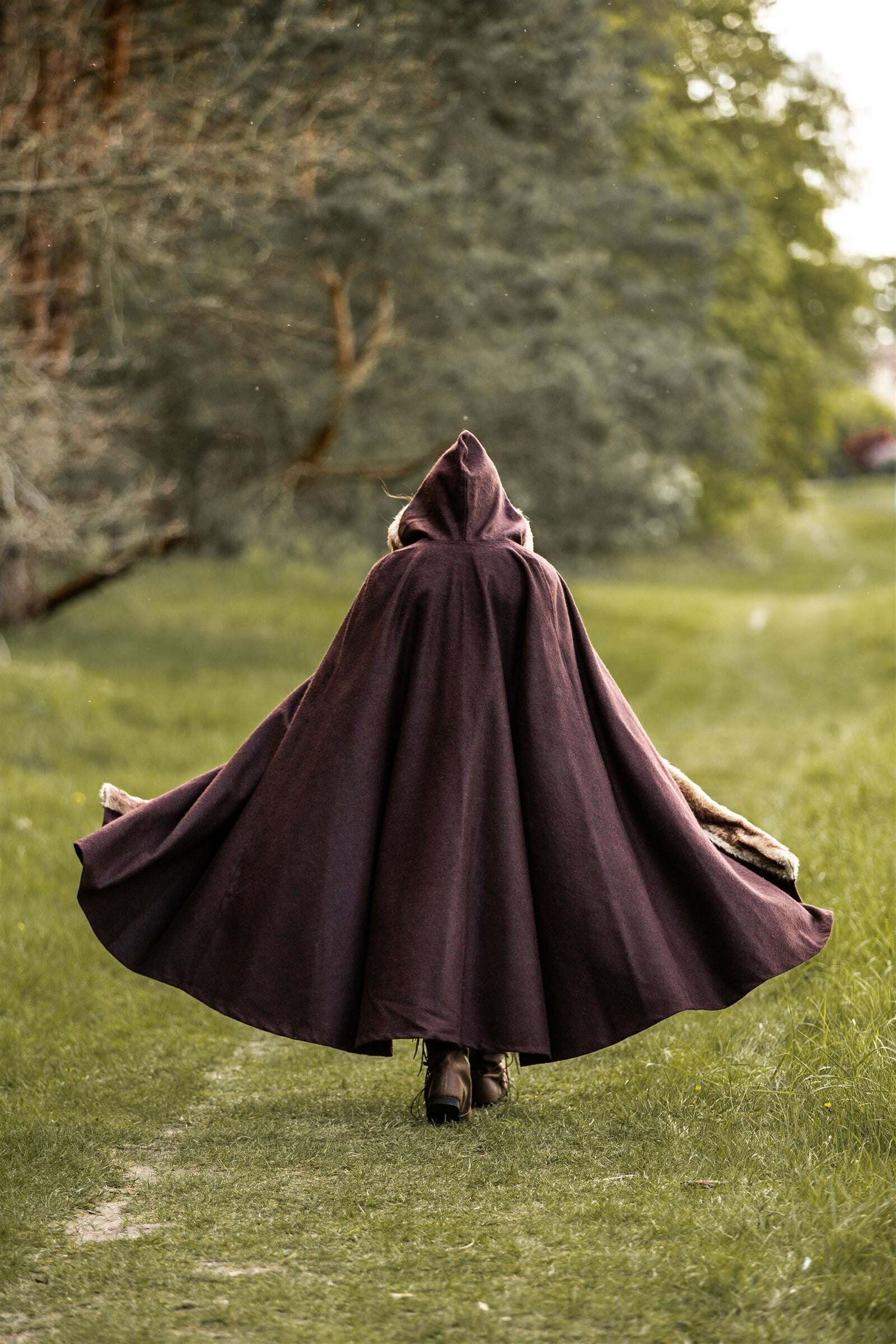 Wikinger Umhang mit Kunstfellbesatz und großer Stoffweite, Braun